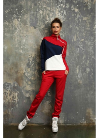 If you prefer a sporty style, then you need to try on stylish suits in this vein. They are equipped with a loose top made of soft fabric (sweatshirts, sweatshirts), as well as shortened or standard pants. Pants can be complemented with sports stripes in a contrasting color. These kits are great for everyday wear.