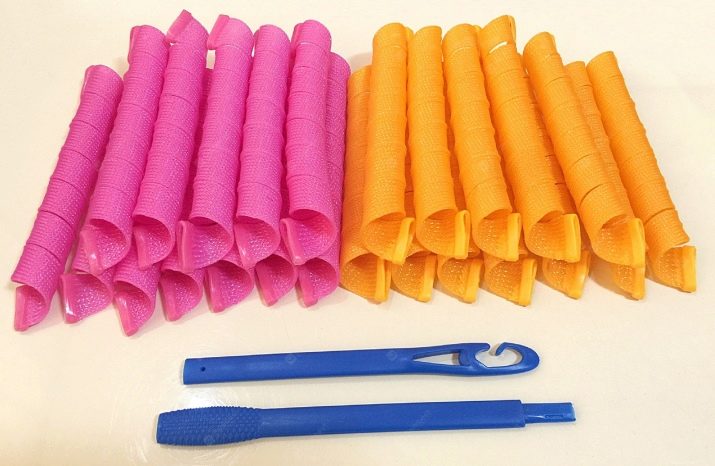 A soft version of bobbins - spirals. These are fabric curlers that are twisted into a spiral. To wrap the strands and fix them, the products are equipped with a special hook. Like bobbins, they help to obtain elastic curls, but are not suitable for heavy thick hair.