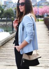 If you want to emphasize the color of the blazer, wear it with dark or light things that will sparkle in a completely new way in the company of a pale blue color.