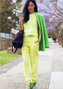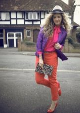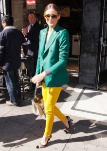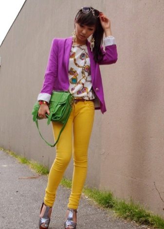 Violet is very successfully combined with yellow, the image is bright, rich and memorable. This tandem is good for walking around the city, and for fashion parties.