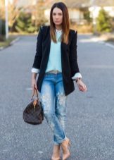 The black blazer looks great with jeans, shorts and overalls, which is very important for those who prefer casual style. Underneath you can wear a T-shirt, T-shirt, shirt or top. All options are good.
