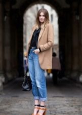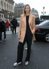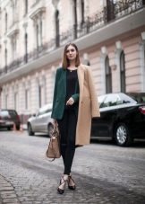 A win-win combination - black total look, complemented by a beige blazer. This option is good for everyday wear, as well as for publication..
