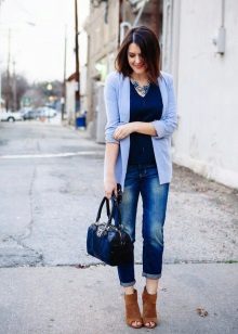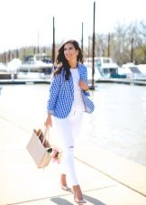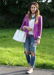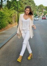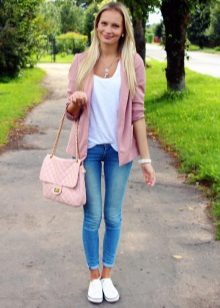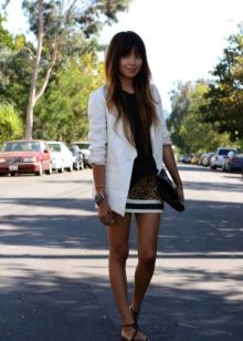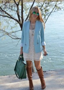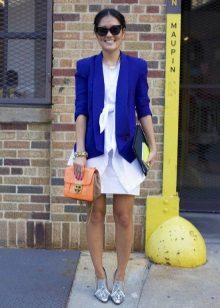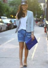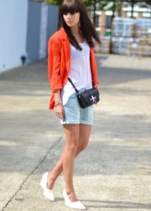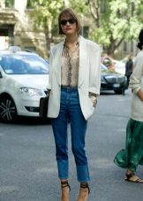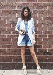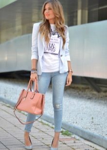 White blazer is the perfect companion of street style. It can be worn with any denim clothing - jeans, shorts, skirts. It is combined with blouses, tops, t-shirts.