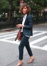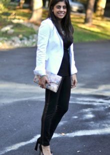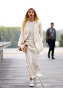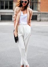The peculiarity of the white blazer is that it is very easy to turn a gentle romantic look for a date into a bright and fiery one for meeting friends, just adding bright accessories to it.
