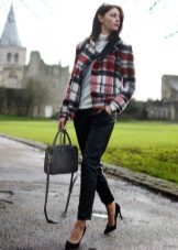 In order not to look like a clown, try combining a checkered blazer with a dark, muted color scheme. It is best to choose dark trousers, jeans, or a little black dress.