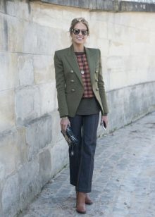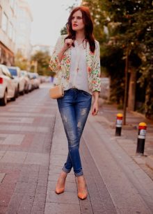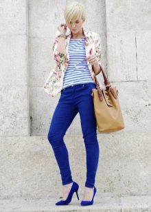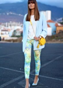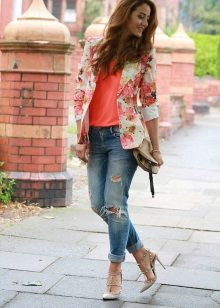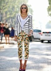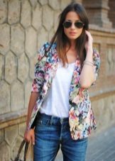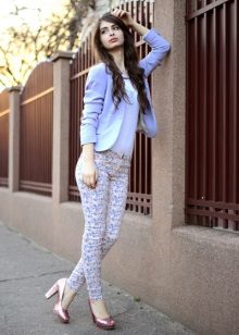 Since such a blazer is not easy to combine with other prints, it is better that the bottom is simple and solidm. This will allow you to look fashionable and stylish, and you will not turn into a flower bed.