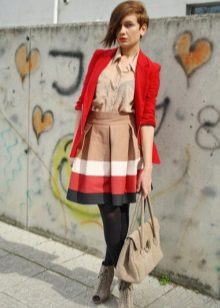 If you want to look elegant, add a dress or a skirt with a beige blazer.