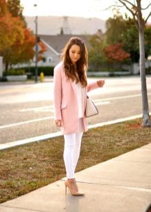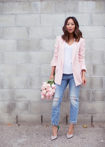 Pink blazer will be a great accent of the image, composed in delicate colors. It doesn’t matter whether you prefer skirts or trousers, it will fit into any modern look.