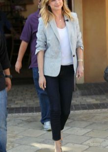 Gray color can be called classic, universal. A blazer of this color is combined with clothes of any color, it can be worn with both pastel and bright colors.