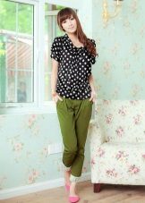 A chiffon blouse looks great in tandem with blue or blue jeans. Lovers of trousers can safely combine it with models in restrained muted colors. When choosing shoes, you can choose different options: comfortable ballet flats or stiletto ankle boots.