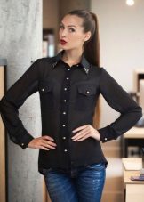 Many models of black shirts have embroidery or an original print as decor. For example, contrast embroidery on the back or sleeves will help to decorate the blouse, make it unique and attractive.