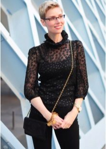 Today, black blouses are often found in tandem with other colors. Now the trend is models with asymmetric interspersed colors. Do not forget about the black polka dot blouse, which for several years has been at the peak of popularity and is not going to be a thing of the past.