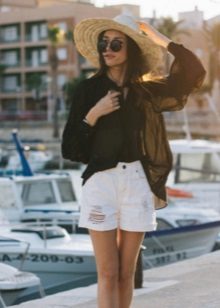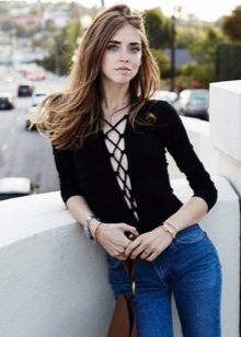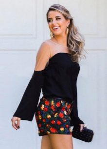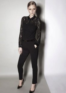 For an evening look, under a black transparent blouse, you can safely put on a bodice decorated with bright decor. Lace models look elegant and mysterious. Such blouses should be worn with a pencil in a tight-fitting cut.