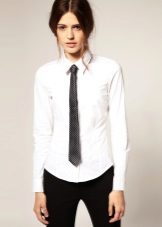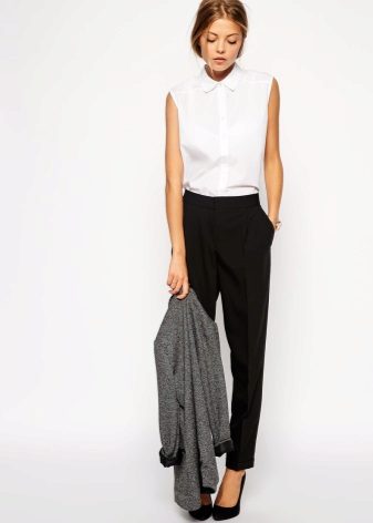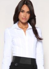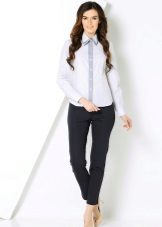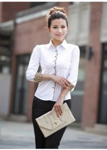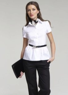 The most popular option that every woman has in her wardrobe. A white shirt is a basic thing, it will always be appropriate to look in an office environment. In addition to a pure white color, it will be easy to choose a jacket. The shirt should be buttoned either on all buttons, or be unfastened on one - two top. A sleeveless model is not appropriate in a business dress code, unless a jacket is worn on top and bare shoulders are visible.