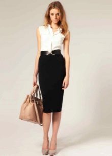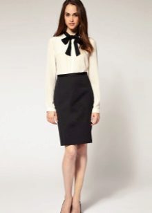 A light silk shirt with a bow and a strict black pencil skirt will help to create a sophisticated look. Do not forget about the high heel, watches and jewelry. In this outfit, you will look elegant and strict at the same time.