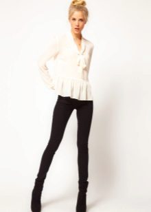 A fairly feminine and elegant look can be obtained with a bow blouse. It also looks appropriate, but not so strict. This model is also suitable for serious negotiations and sets up your interlocutor for a friendly conversation.