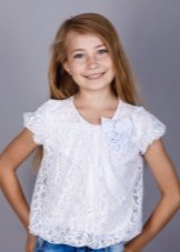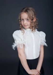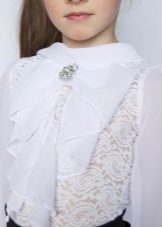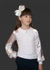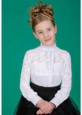 An elegant school blouse differs from the usual one, first of all, by the material and the addition of various decorative elements. Natural cotton or practical polyester is being replaced by more elegant satin, silk, guipure, cambric, lace, etc.