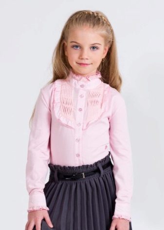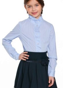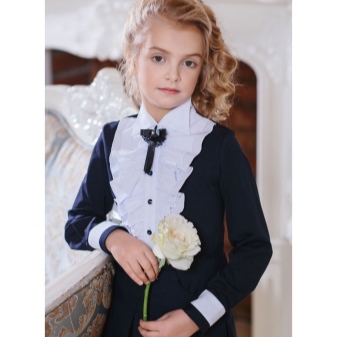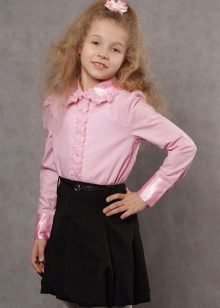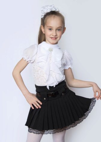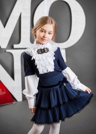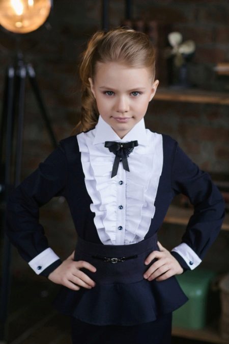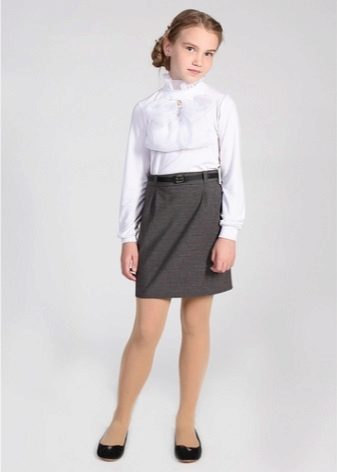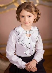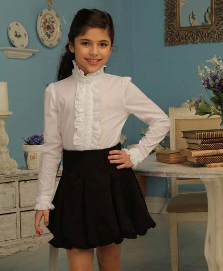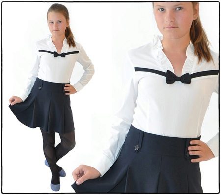 Too fluffy, elegant blouse is best combined with a straight or trapezoid skirt. Fluffy skirts on the yoke, with pleats require a calmer top. Still, uniforms imply a certain restraint in style. It should be as comfortable as possible and not distract the child from classes.