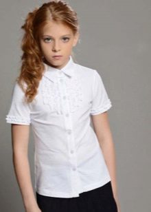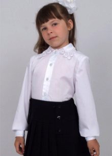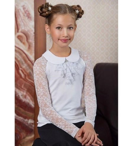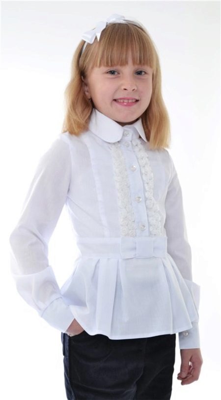 The lineup of blouses for students of different ages is very diverse. However, there are several basic styles that are most often found in school wardrobe. Models differ from each other in the form of a collar, sleeves, decorative elements, but as a rule, the most basic styles are taken as a basis: