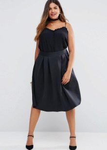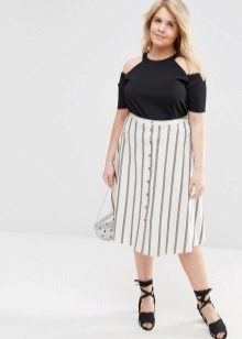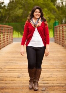 Shoes are better to choose with heels, it can be shoes, sandals or ankle boots. You are shown a long sock that visually lengthens the leg and makes it slimmer. If shoes and accessories are bright, this will distract attention from the flaws of the figure.