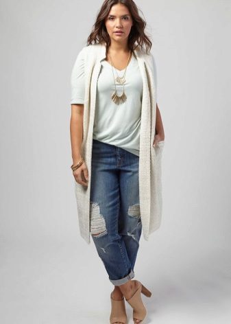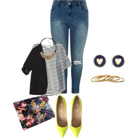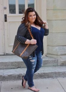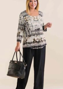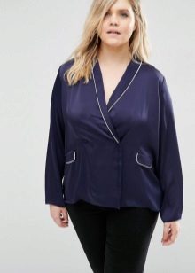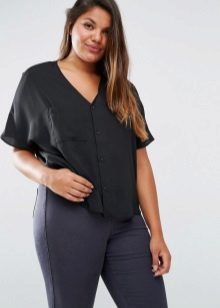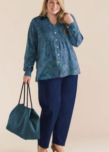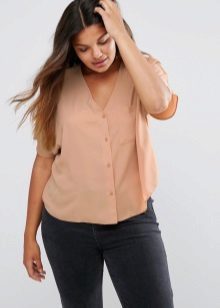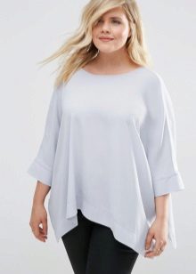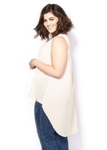 Choose a blouse with a vertical pattern and various decorative elements in the neckline. If you have problematic hips, prefer an elongated model to the middle of the thigh.