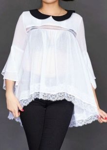 For work, a fit man's fit, for every day - tunic blouses and models in ethnic style. To go out, get a white blouse with a bow, ruffles or various decorative inserts.