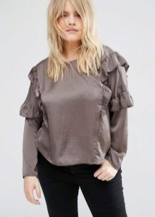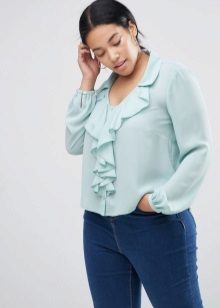 Girls with fluffy hips need to be careful when choosing this style, because some models can visually expand the hips. Choose a blouse with a frill slightly above the widest part of the hips. If your figure is a triangle, you should prefer a loose blouse with a frill on the hips, this will visually balance your figure.