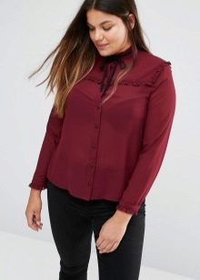 Elegantly decorated collar of a blouse or its neck is suitable for a romantic look. A voluminous bow-tie a la tie will help to focus on the neck, diverting attention from a full waist or hips. Blouse with ruffles is not only beautiful, but also versatile, it is suitable for work in the office, and for a festive event.