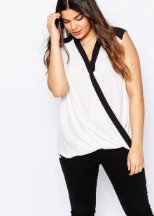 A wraparound blouse is a classic wardrobe, but it will be appropriate in everyday life. It can visually make you slimmer, so it is ideal for full girls. The smell will allow you to adjust the size of the product if you suddenly get a little better or, conversely, decide to lose a few extra pounds.