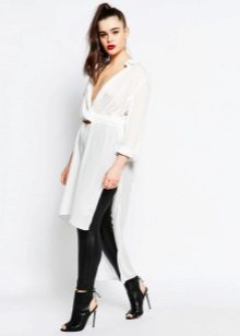 The ideal solution is a blouse shirt, light for a business look and dark or checkered for everyday wear. You can wear it with jeans, trousers, a pencil skirt. If you want to adjust the shape of the hips, wear it out of the way, and if you have a small stomach, you can safely fill it.