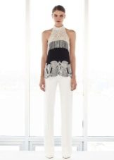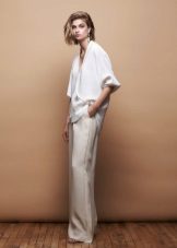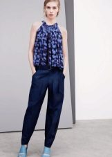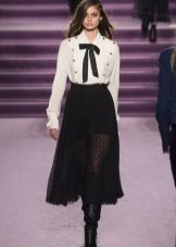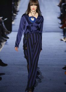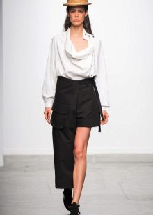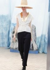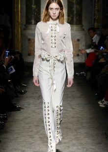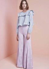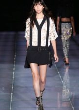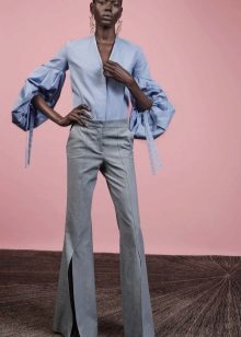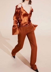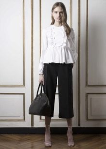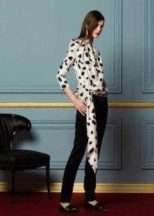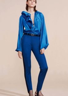Blouses go well with tight colored trousers, leather leggings and short shorts. At the same time, loose blouses look most effective with a tight bottom, and blouses on the figure - with wide trousers or skirts.