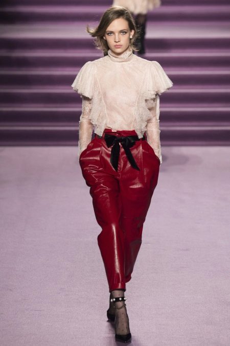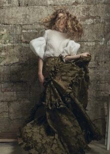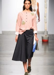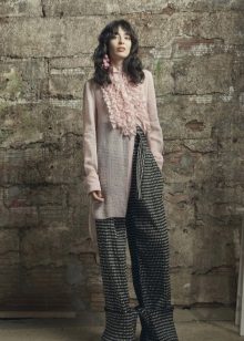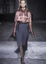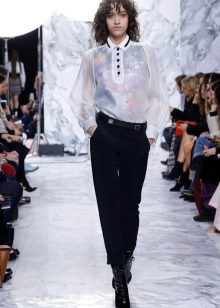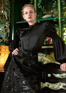 This is a descendant of a men's shirt that was worn under a vest and frock coat. A silhouette with a marked waistline allows you to emphasize the grace and fragility of a female figure. Such blouses can be worn out of style, or tucked into trousers or a skirt.