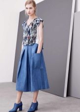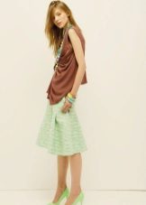 Shoes to the kit should be selected, depending on the overall style of the image. The blouse will be perfectly combined both with pumps, and bright sandals or comfortable sneakers. Do not forget to complement the look with stylish accessories: jewelry, handbag, leather belt, etc.