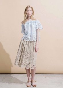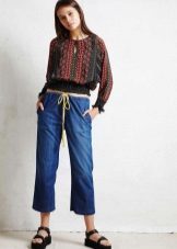 A cropped blouse that opens part of the abdomen is one of the fashion trends of this season. But, so that the image does not turn out to be too provocative, it is recommended to wear such models complete with a hem on the high waist.