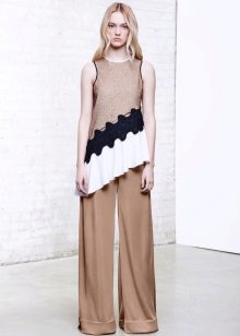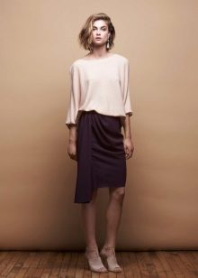 - Girls with a protruding tummy are advised to wear the classic combination of “light top + dark bottom”. Pay attention to straight and flared silhouettes, models with a wide peplum and tucks under the chest. Do not wear tight-fitting blouses, especially those made of thin knitwear.