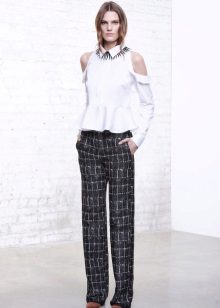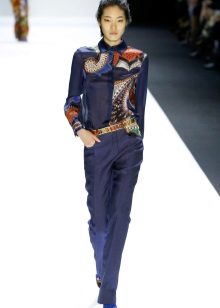 An option for those who like bright, unusual things.The selection of patterns on the fabric is now huge. You can buy a blouse with a delicate, delicate ornament, or you can pick up a thing with a large, eye-catching pattern.