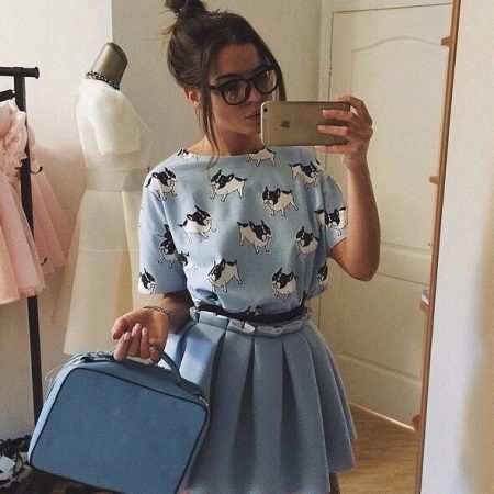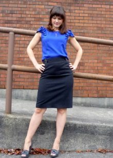A blue blouse combined with a skirt - the sun will be indispensable for cool summer days.
