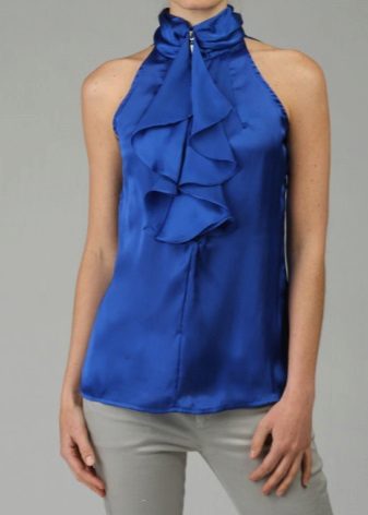 Blouses with a short and wide frill, as well as with a voluminous collar, are not recommended for girls with magnificent breasts.