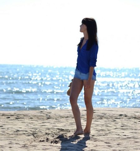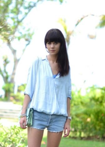 Shorts and a blue blouse are a daring option.You can choose classic shorts or cropped, denim or cotton. Match shoes to style and occasion.