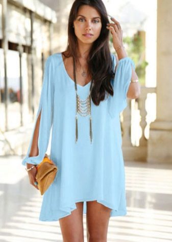 A short sleeve can be made in various cutting techniques, for example, a tulip or a flashlight. The sleeve can be very short, such as wings, or maybe just above the elbow.
