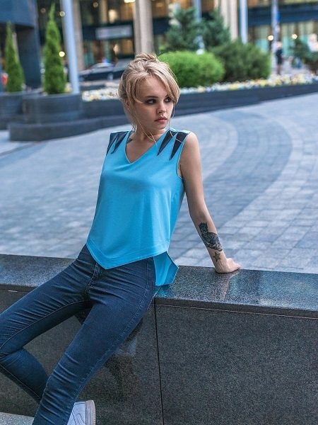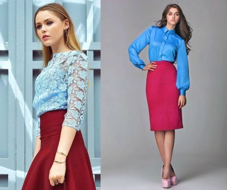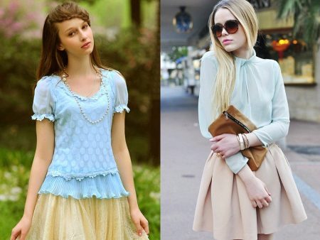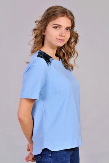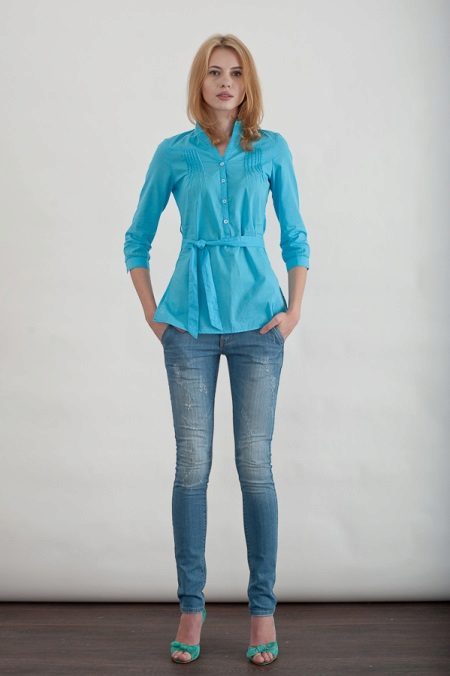 Blue blouses will be an excellent choice for girls of the summer and winter colors. For girls with fair skin, blue will help to focus on the sophistication of the wardrobe.