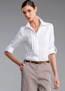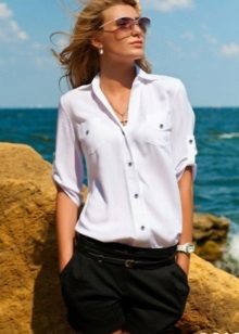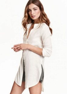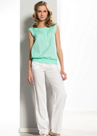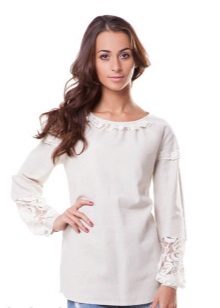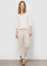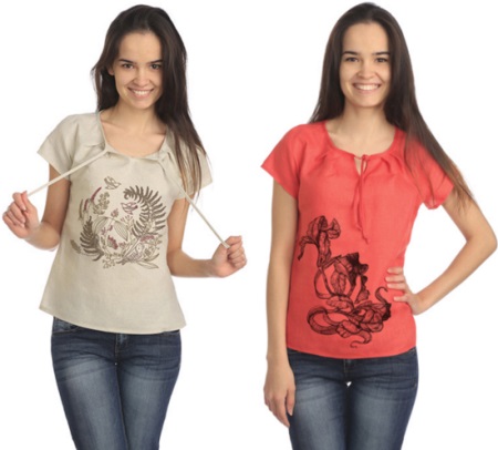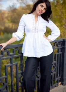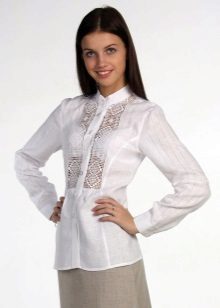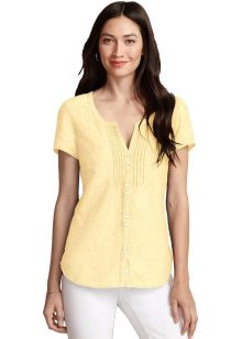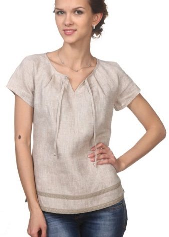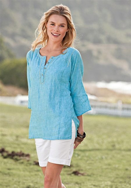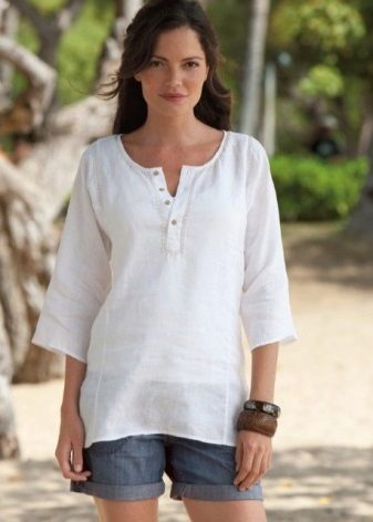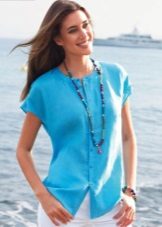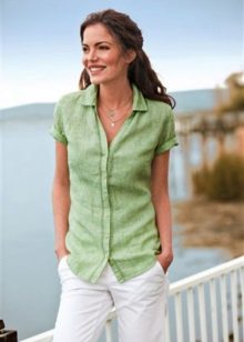 Linen shirt blouses are worn with trousers, a skirt or Bermuda shorts.