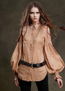 Wide blouses are worn with a strap to emphasize the waist, and a deep neckline will be perfectly decorated with a sparkling pendant.