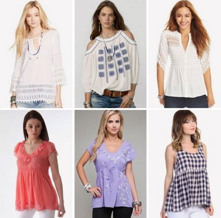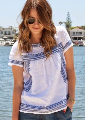 Romantic patterns with embroidery or lace look holistically on their own. They are usually complemented by a plain plain skirt or wide trousers.