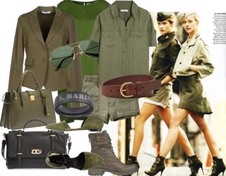 A khaki men's shirt looks great with a skirt or matching shorts. Such an image will look catchy and emphasize your fragility.