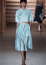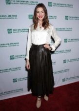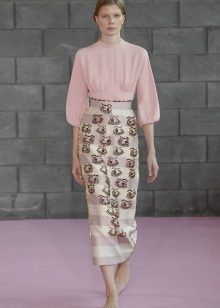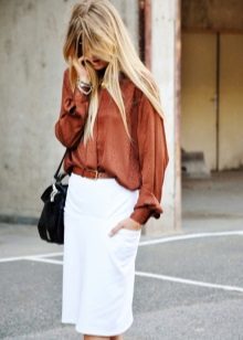 For a business look, blouses with long sleeves in delicate pastel colors are perfect. They can be combined with midi-length skirts. At the same time, you should adhere to the rule: if the blouse is plain, then the skirt can be decorated with a print and, conversely, it is necessary to select a plain bottom to a bright blouse with decor.