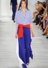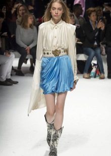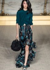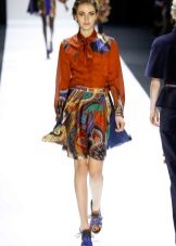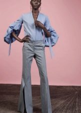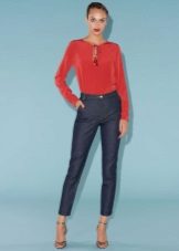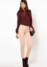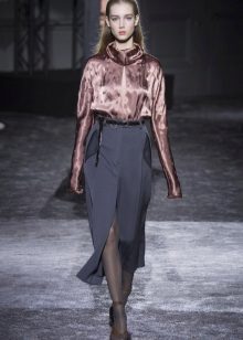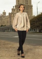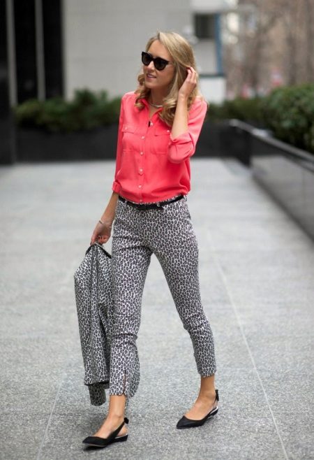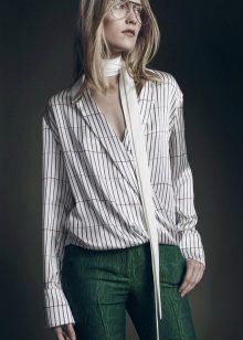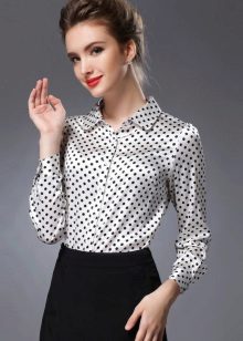 In the trend, silk blouses on buttons, in a peasant style, or decorated with unique prints. The best option is a classic blouse with a traditional collar and soft buttons.