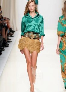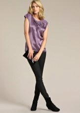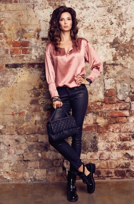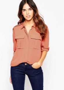 Today, the trend is elongated silk blouses. Often they are presented in military style. They go well with длиной-length pants, lessings, or breeches. In this outfit, you can go for a walk or a romantic meeting.