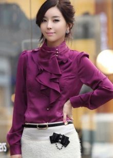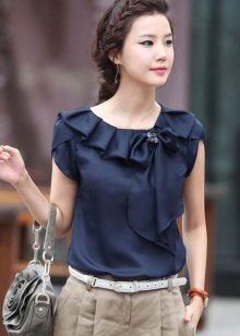 Models of artificial silk blouses in appearance are in no way inferior to clothing made of natural material. But the characteristics are significantly different. In such a blouse will be uncomfortable throughout the day.