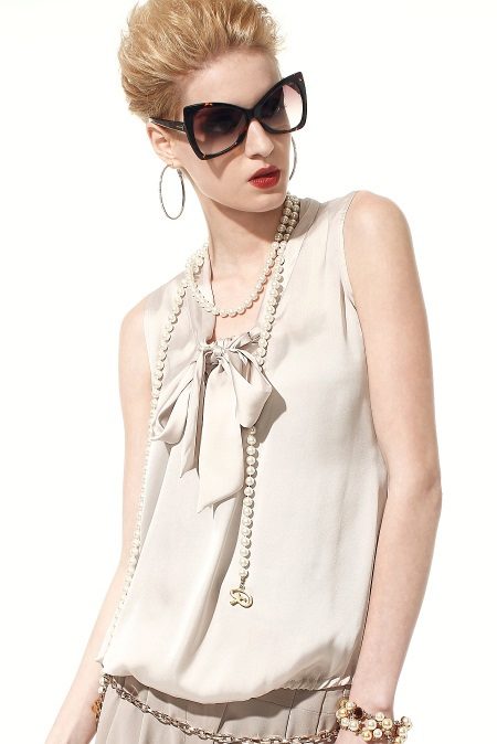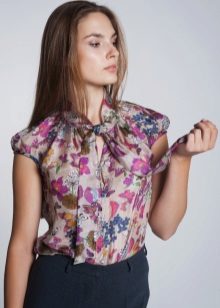 Sleeveless silk blouses are much like vests. They are usually worn to create a fashionable bow for every day. For a romantic look, a sleeveless blouse should be worn with a fluffy skirt and an elegant clutch. It can be decorated with a variety of decorative elements.